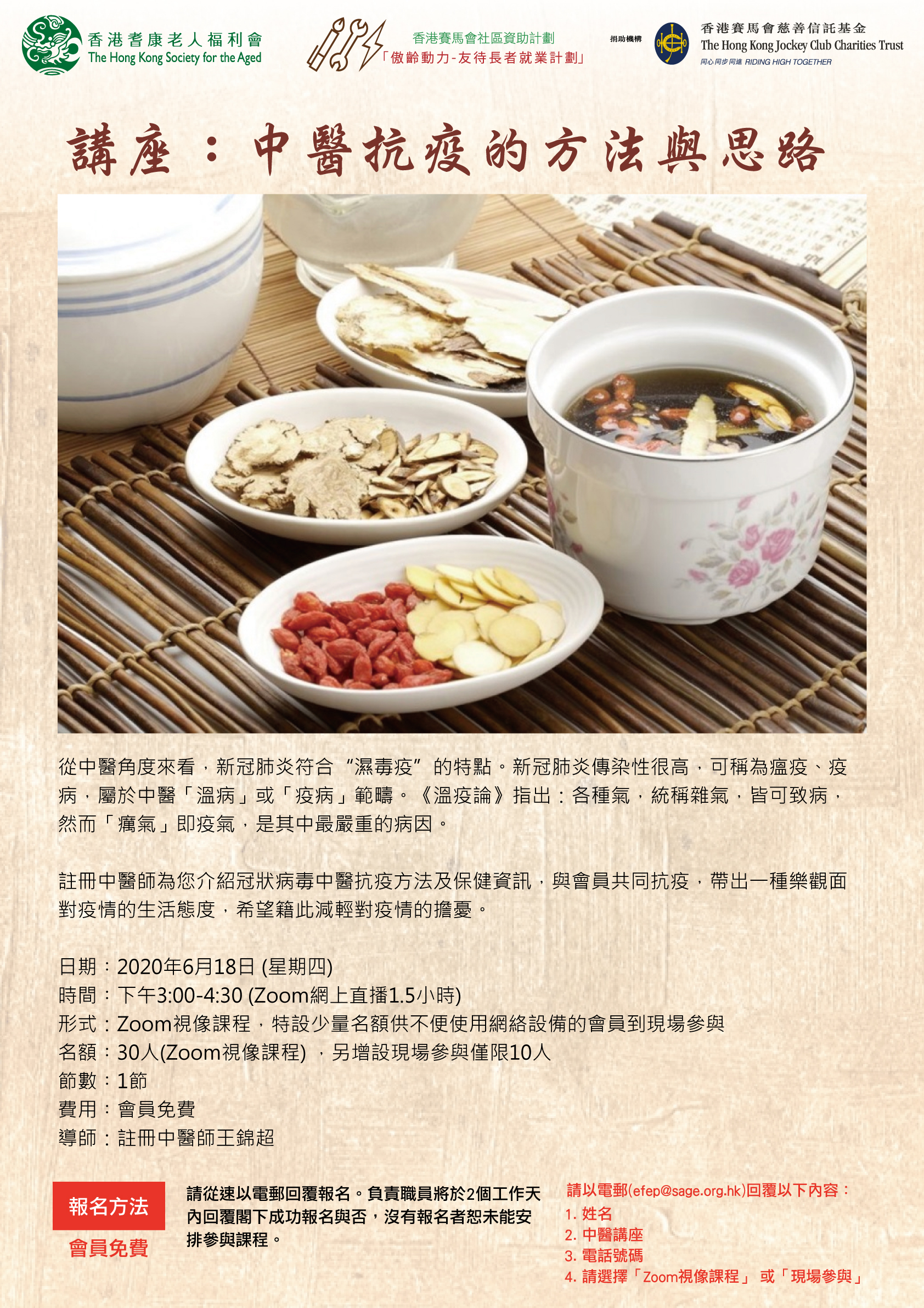 形式:Zoom視像課程,特設少量名額供不便使用網絡設備的會員到現場參與